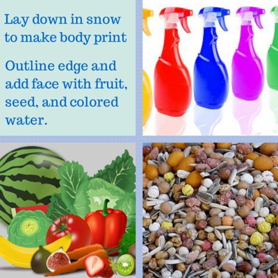 Young artists will love working in the snow to create a self-portrait. Animals and birds will enjoy the tasty treat.