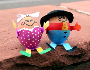 While the paint dries, have the kids draw legs, arms, hats, wings, etc. on the paper. Cut out and glue the pieces onto the eggs once the paint has dried.