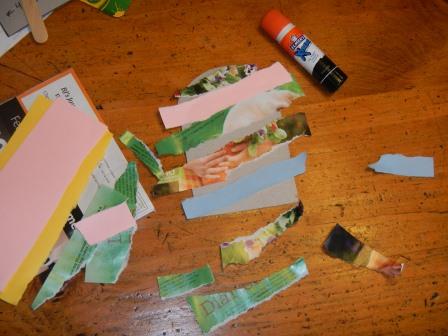 Use scrap paper, construction paper and magazines. Tear strips of paper.